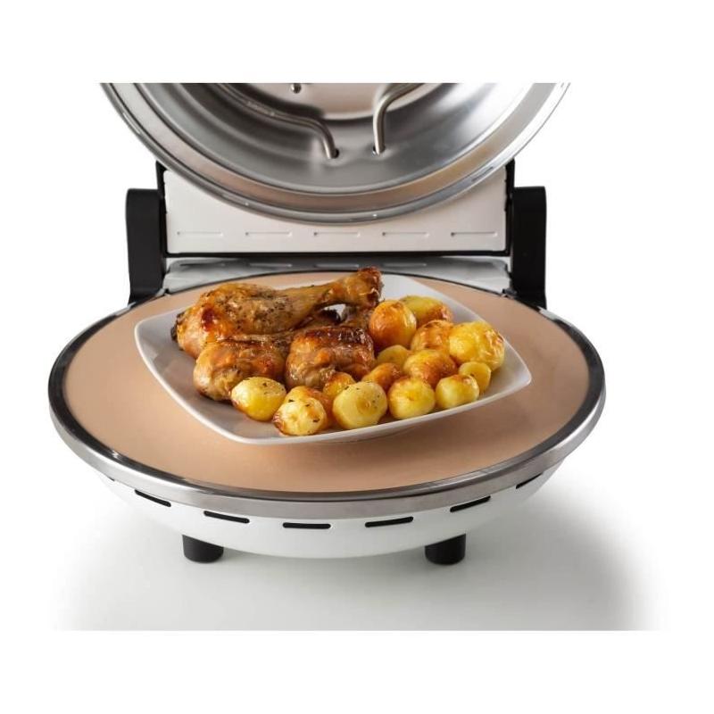 Grâce à son diamètre de 33cm, ce four spacieux peut accueillir des pizzas de taille moyenne à grande, idéal pour les repas en famille ou entre amis. Sa température maximale de 400°C permet une cuisson rapide et homogène, pour des résultats toujours savoureux.