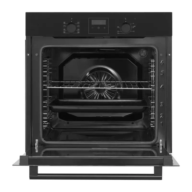 Doté d'un design élégant et moderne en couleur noir, ce four s'intègre facilement dans n'importe quelle cuisine. Son programmateur digital vous permet de sélectionner facilement les modes de cuisson et de contrôler le temps de cuisson avec précision. Avec des dimensions de 59,5 x 59,5 x 56,6 cm, ce four encastrable s'installe parfaitement dans un meuble de cuisine standard.