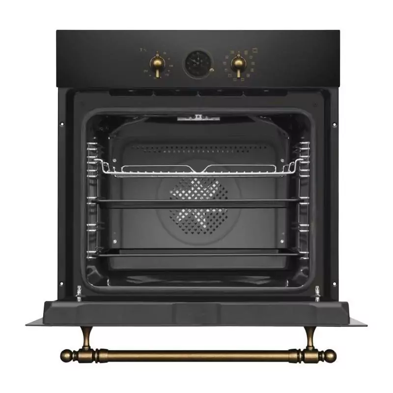 Découvrez le four multifonction Catalyse AMICA ED17319B RETRO en couleur Noir, avec des dimensions compactes de 59,5 x 59,5 x 57 cm.