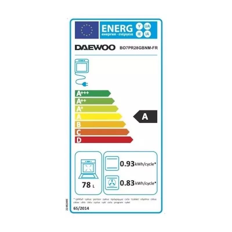 Four encastrable- Pyrolyse - Chaleur pulsée - DAEWOO - BO7PR28GBNM - Noir - Porte froide - 59,5 x 57,5 x 59,5 cm