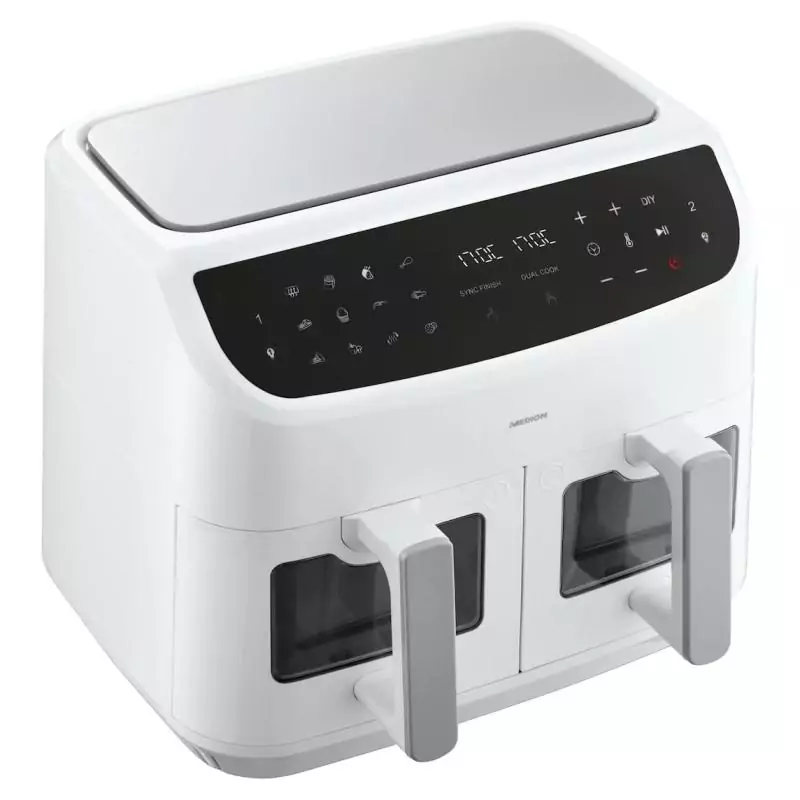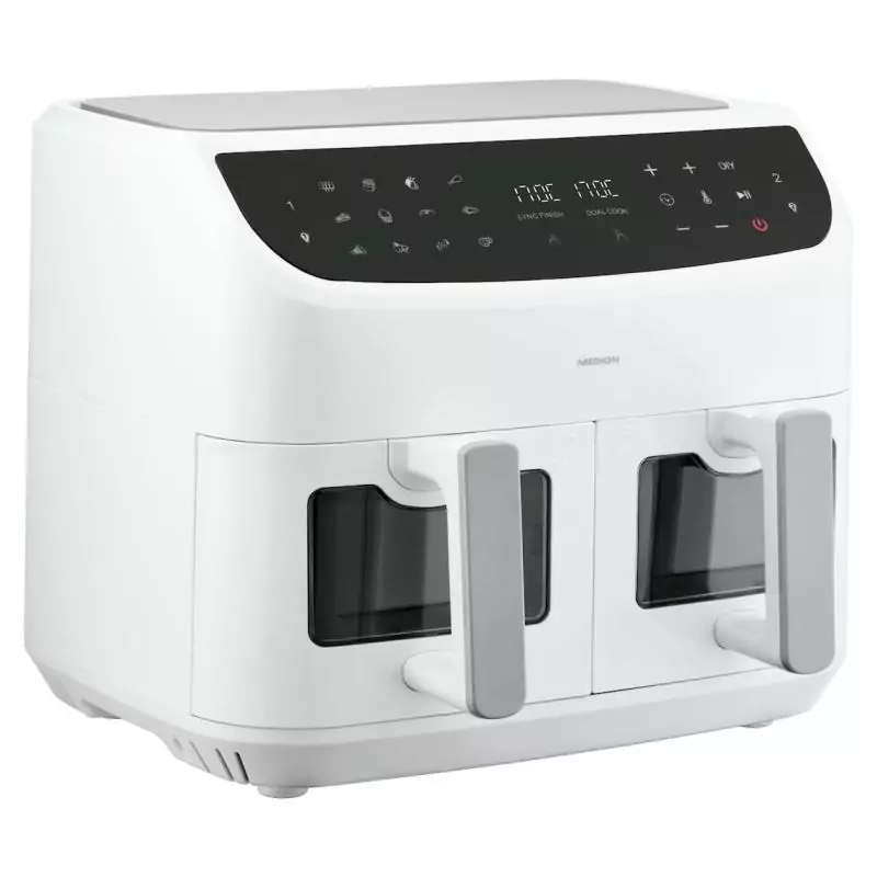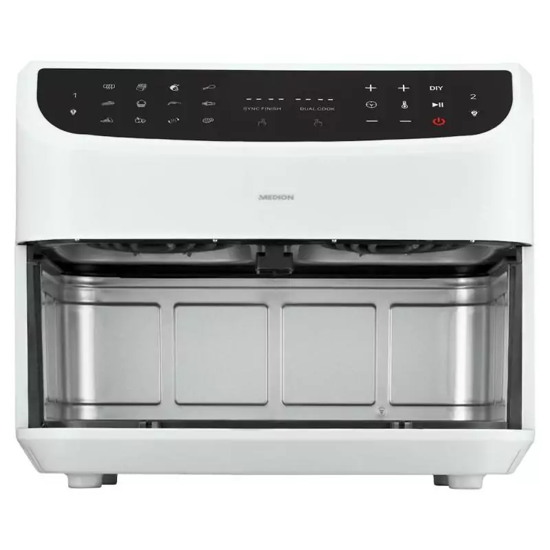 Friteuse a Air Chaud - MEDION - P20 XXL Twin - 2600 W - 2 paniers - 9 programmes - Blanc