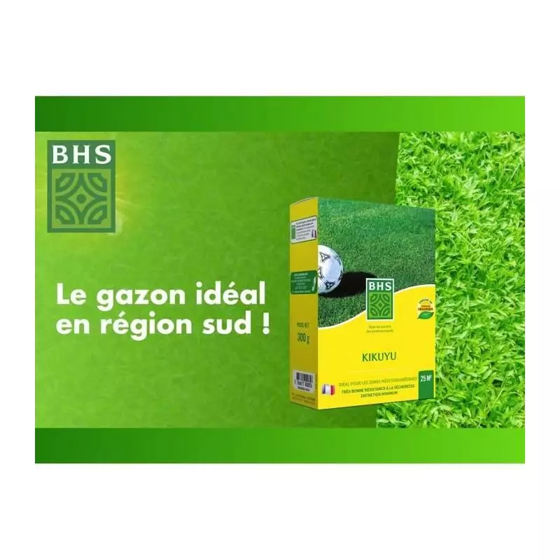 Kikuyu - BHS - 300g | 25 m² | Zones méditerranéennes | Résistant aux fortes chaleurs et aux piétinements.