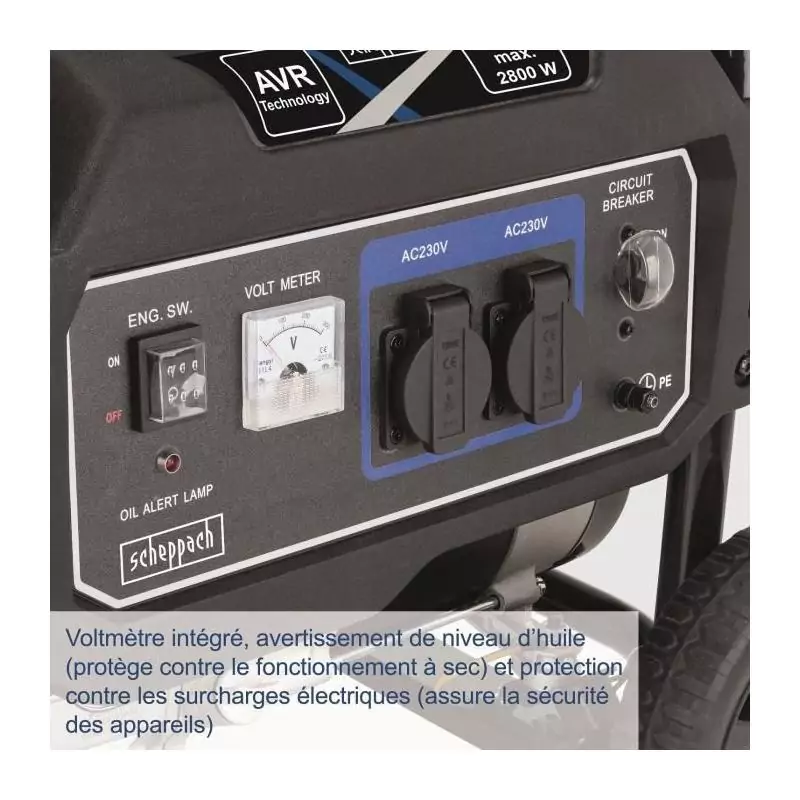 Le Groupe électrogene SCHEPPACH SG3200x est un outil puissant et fiable qui vous permet de faire face aux pannes d'électricité imprévues. Avec une puissance maximale de 2800W, ce groupe électrogène fonctionne à l'essence, ce qui le rend pratique et facile à utiliser.