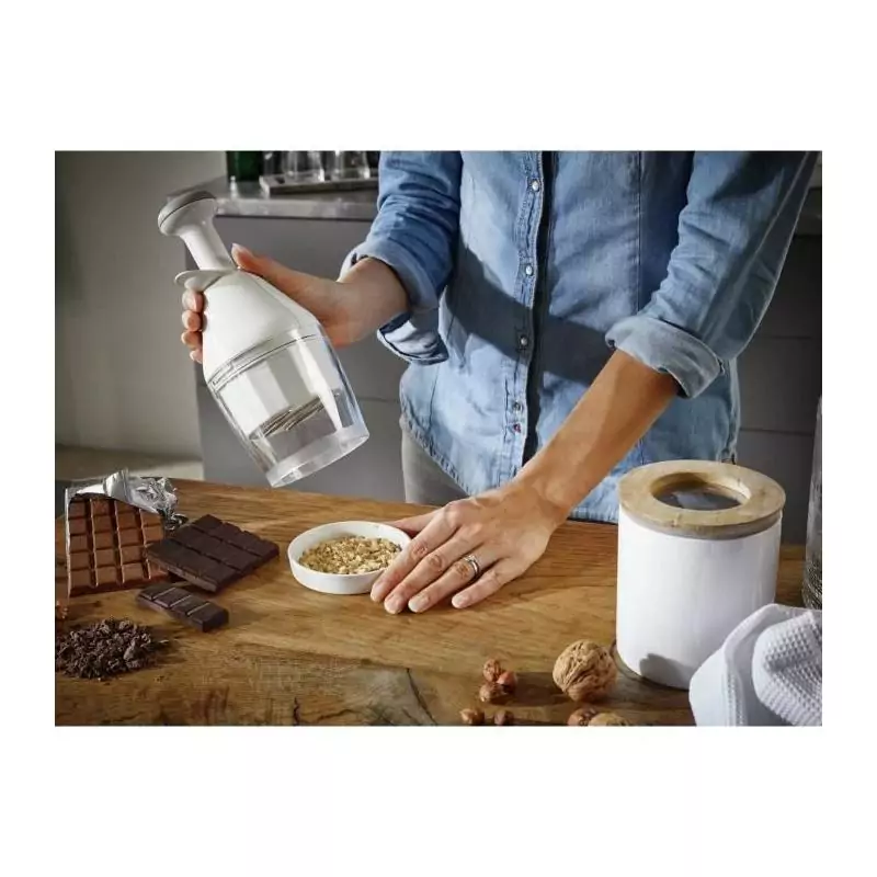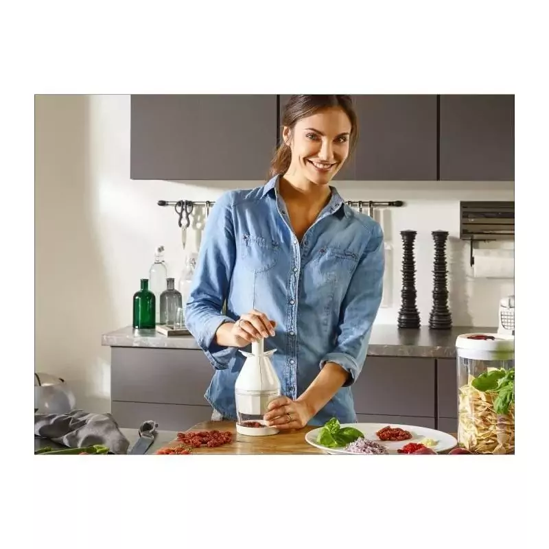 Voici le Hachoir à Légumes LEIFHEIT COMFORT & CLEAN 23030 en couleur blanc, un outil manuel extrêmement tranchant, idéal pour couper les oignons et autres légumes avec facilité et précision. Ce hachoir est conçu pour offrir une expérience de cuisine agréable et efficace, en vous permettant de préparer vos repas rapidement et sans effort.