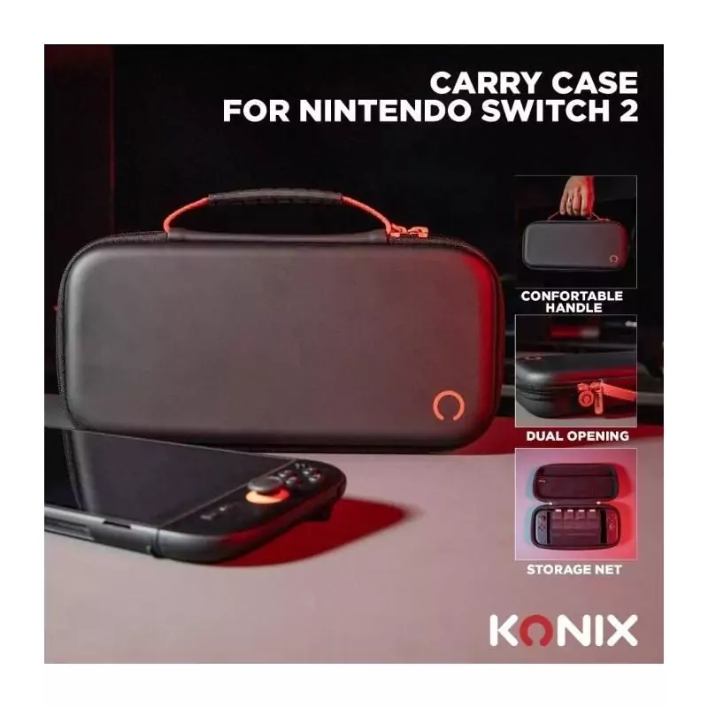Housse de protection et transport - KONIX - Console Nintendo Switch 2 - Filet rangement accessoires - 8 compartiments jeux - Noi