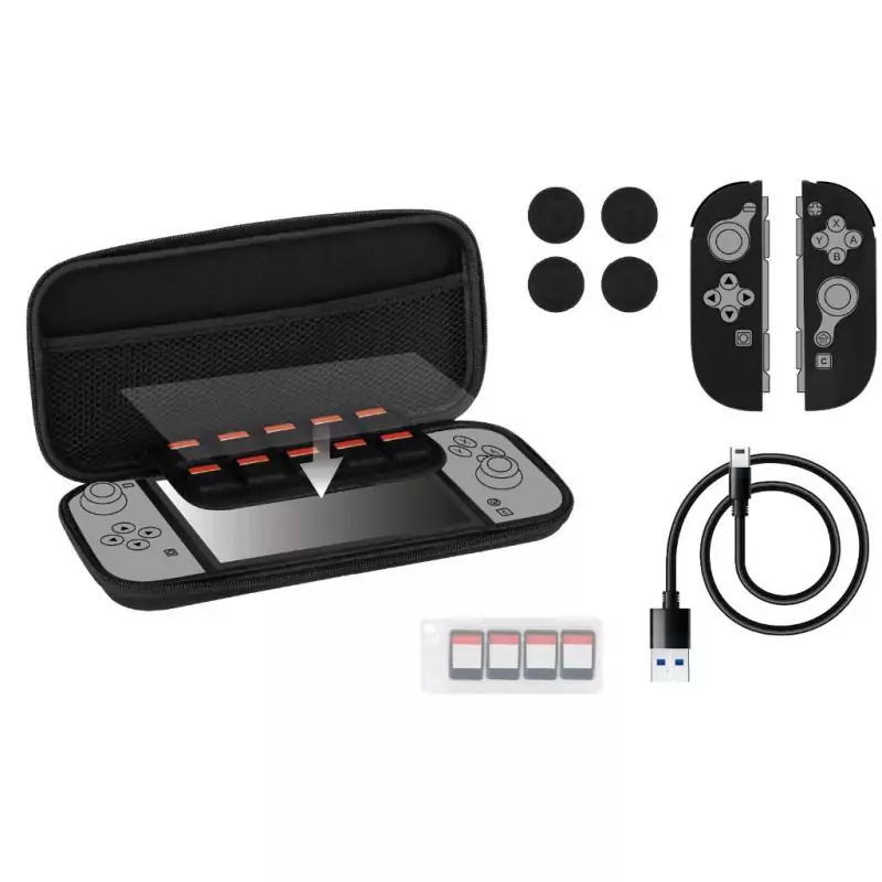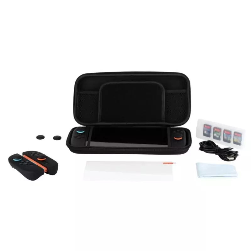 Optimisez votre expérience gaming avec ce pack d'accessoires KONIX pour Nintendo Switch 2. La housse robuste protège votre console en déplacement, tandis que les 4 appuie-pouces améliorent votre précision de jeu. Le verre trempé offre une protection supplémentaire à l'écran. Transportez jusqu'à 9 jeux dans le boîtier inclus et profitez du son immersif avec les écouteurs de qualité. Préparez-vous pour des heures de jeu passionnant avec ce kit complet d'accessoires gaming.