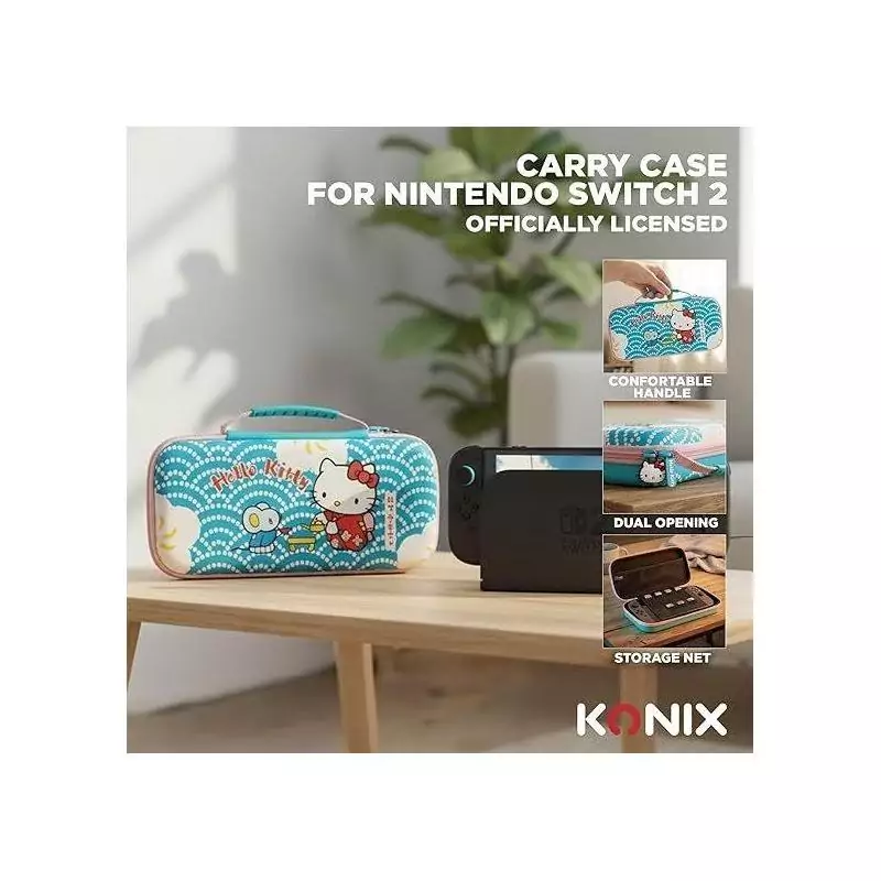 Protégez et transportez votre console Nintendo Switch 2 avec style grâce à la housse Konixt Hello Kitty. Cette housse est dotée d'un motif thé original et d'un filet de rangement pratique pour vos accessoires. Conçue pour offrir une protection optimale contre les chocs et les rayures, cette housse est l'accessoire parfait pour les fans de jeux vidéo. Transportez votre console en toute sécurité tout en affichant un look unique et original grâce à cette housse exclusive Hello Kitty.