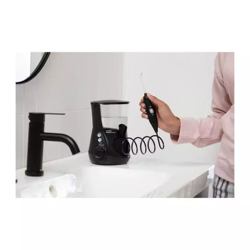 Le Hydropulseur Waterpik WP-662 en noir est l'accessoire hygiénique parfait pour les adultes, hommes et femmes. Ce dispositif innovant vous offre une expérience de nettoyage buccal exceptionnelle, vous permettant d'éliminer efficacement la plaque dentaire et les résidus alimentaires, même dans les zones les plus difficiles d'accès.