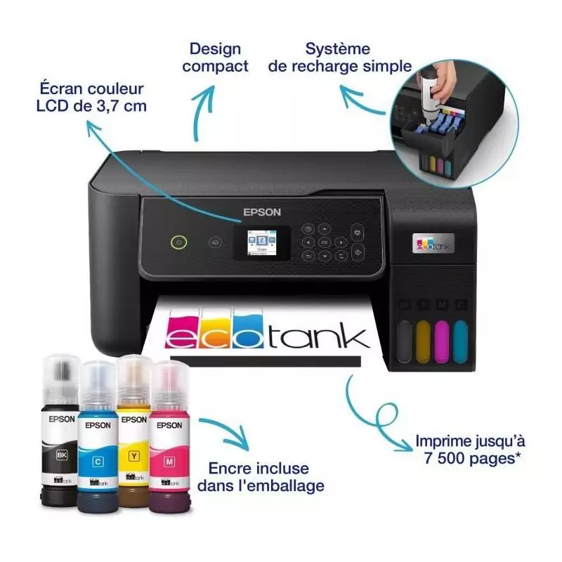 Imprimante multifonction A4 - EPSON - Ecotank ET-2870 - Wi-Fi - Réservoirs d'encre - 3 ans d'encre inclus