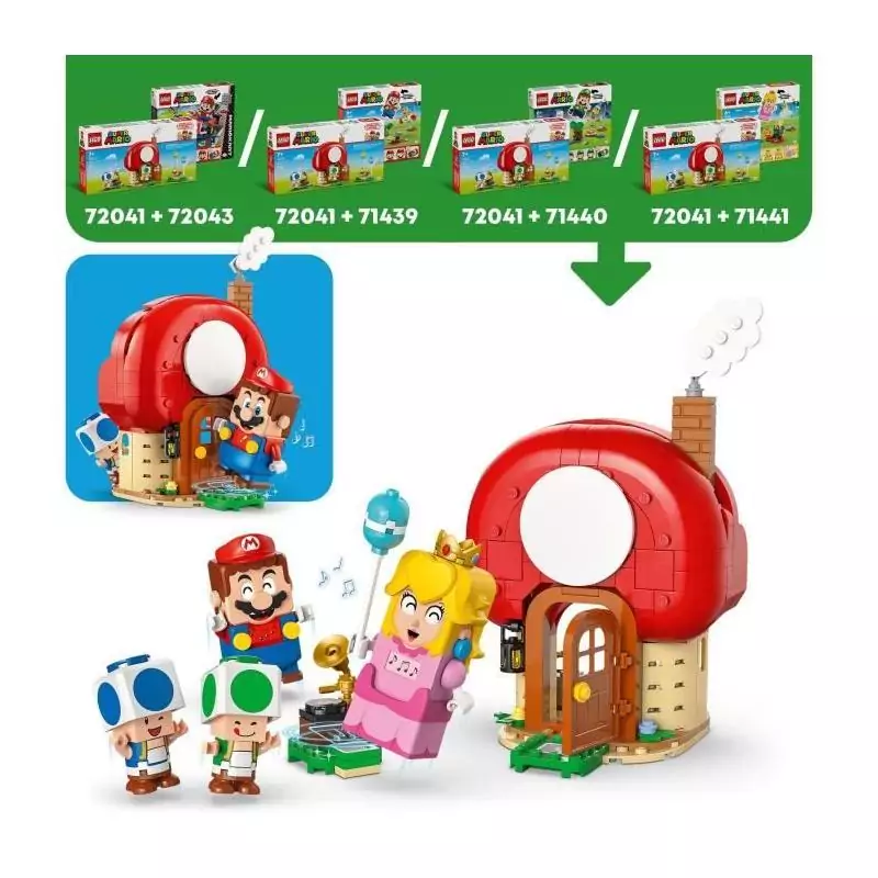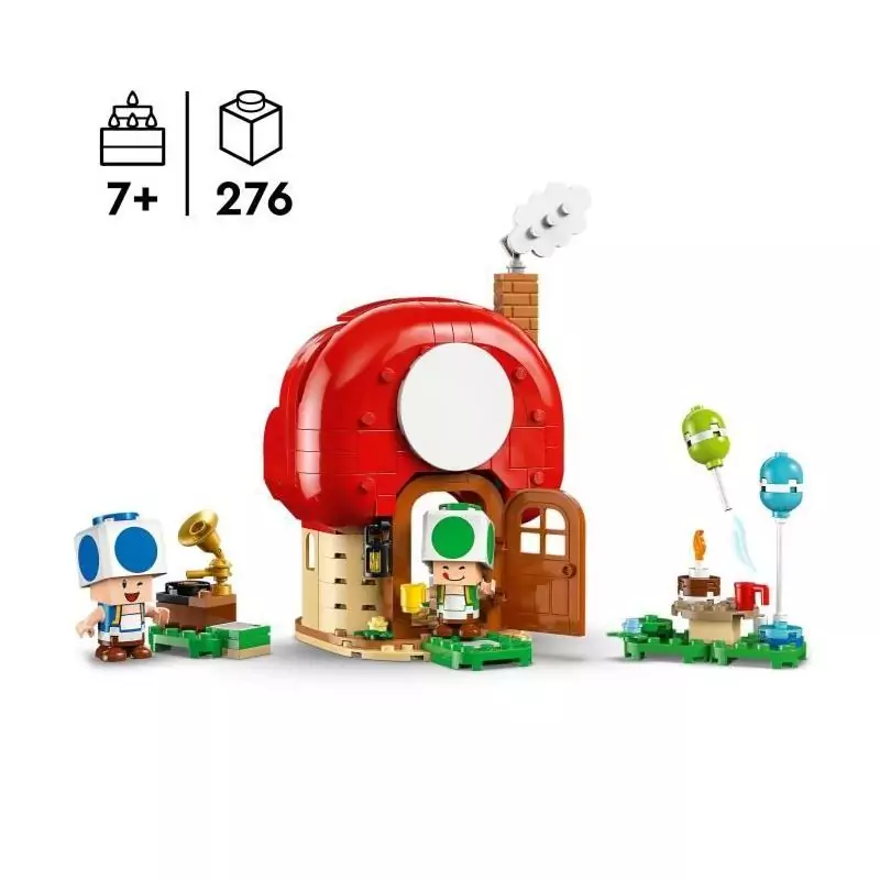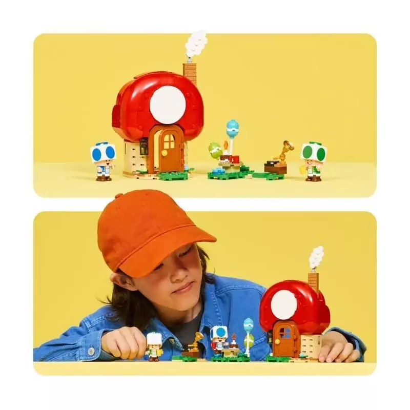 Avec ce coffret, les enfants pourront construire l'univers festif des Toads, en incluant des éléments comme la maison des Toads, une balancelle et une glissade. Les Toads sont également de la partie, prêts à participer à la fête et à aider Mario dans ses missions.