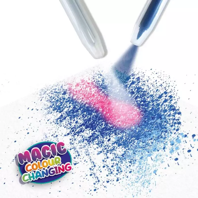 Ces feutres aérographes à souffler peuvent changer de couleur ! Ces feutres spéciaux se transforment en feutres aérographes dans lesquels tu peux souffler. Mais ce n’est pas tout ! Le feutre blanc permet de changer les couleurs ! Tu pourras créer des œuvres incroyables avec un effet pulvérisé.