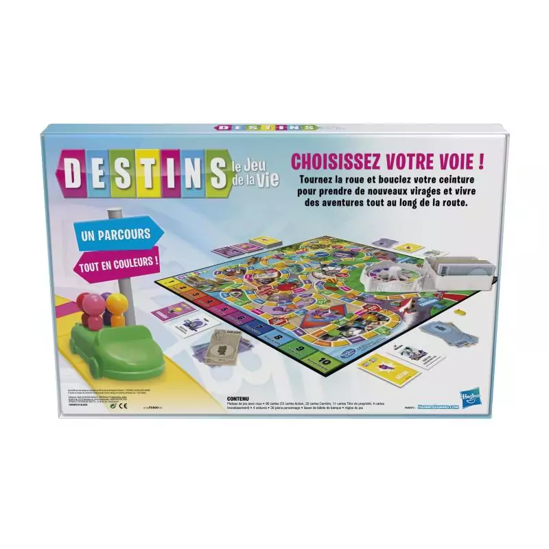 Hasbro Gaming Destins Le jeu de la vie. Type de produit: Jeu de société, Genre: Jeu de rôles, Age recommandé (min): 8 an(s), Édition de jeu: Edition standard, Jeu familial