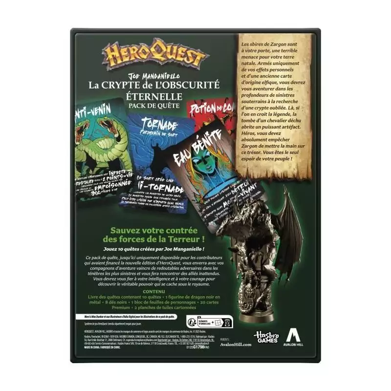 N'attendez plus pour rejoindre la bataille et affronter les forces du mal dans ce jeu de plateau épique. Le HeroQuest Pack de quete La crypte de l'obscurité éternelle promet des heures de divertissement et d'aventure pour tous les passionnés de jeux de société et de jeux de rôle. Êtes-vous prêt à relever le défi et à devenir un héros légendaire ?