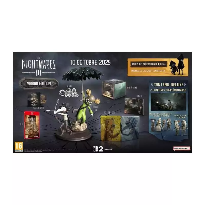 Le Little Nightmares III - Édition Mirror • Jeu Nintendo Switch 2 est un jeu captivant qui vous plonge dans un univers sombre et mystérieux. Incarnez le personnage principal et explorez des environnements lugubres et énigmatiques remplis de dangers et d'énigmes à résoudre.
