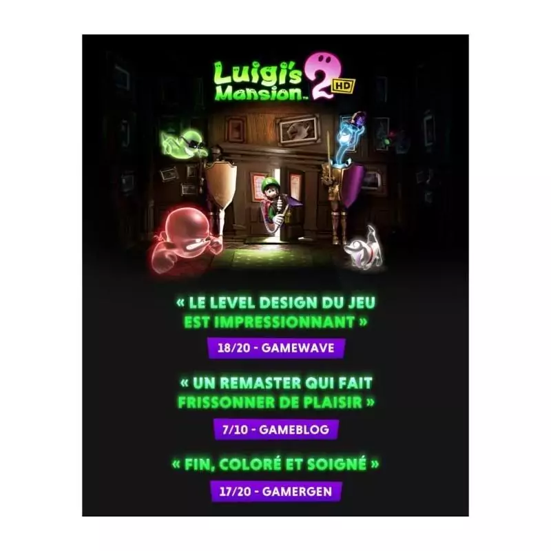 Plongez dans une aventure captivante avec Luigi's Mansion 2 HD pour la Nintendo Switch. Explorez des manoirs hantés, capturez des fantômes et résolvez des énigmes palpitantes pour sauver Mario. Profitez de graphismes améliorés en haute définition qui donnent vie à ce classique de Nintendo. Avec des heures de gameplay amusant et addictif, ce jeu est parfait pour les fans de tous âges. Rejoignez Luigi dans sa chasse aux fantômes et montrez vos compétences de chasseur de spectres !