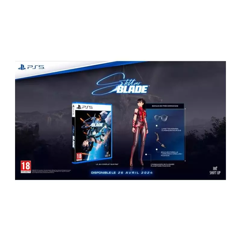 Sony Stellar Blade. Édition de jeu: Standard, Plateforme: PlayStation 5, Valeur ESRB: M (Mature), PEGI classification: 18, Développeur: SHIFT UP, Date de sortie: 26/04/2024