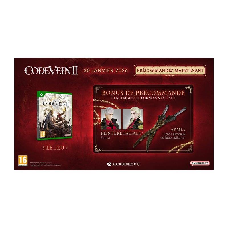 Découvrez le monde sombre et captivant de CODE VEIN II sur Xbox Series X. Plongez dans une aventure épique remplie d'action, de mystère et de défis palpitants. Avec des graphismes époustouflants et un gameplay immersif, ce jeu vous promet des heures de divertissement sans fin. Affrontez des ennemis redoutables, explorez des environnements riches en détails et vivez une expérience de jeu inoubliable. Préparez-vous à relever le défi ultime avec CODE VEIN II !