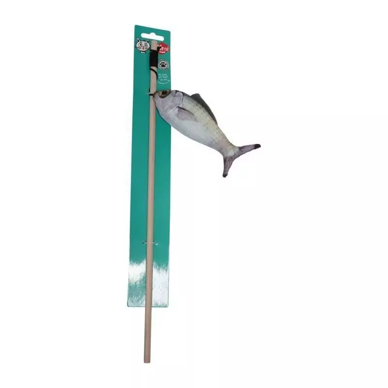 Découvrez le jouet parfait pour divertir votre chat pendant des heures! La canne à pêche AIME avec un poisson en bois de 15 cm est l'accessoire idéal pour stimuler l'instinct de chasse de votre félin. Fabriqué en bois naturel et de haute qualité, ce jouet est à la fois sûr et durable. Offrez à votre chat des moments de jeu amusants et interactifs grâce à cette canne à pêche colorée et amusante. Votre chat va adorer sauter, chasser et attraper ce poisson attachant!