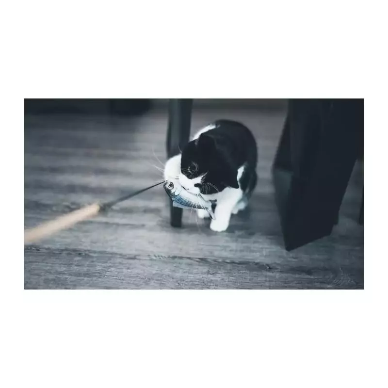 Le jouet chat AIME Canne à pêche poisson est le jouet parfait pour divertir votre félin préféré. Fabriqué en bois de haute qualité, ce jouet est non seulement durable mais aussi respectueux de l'environnement. La canne à pêche est munie d'un joli poisson en peluche de 15cm qui attirera immédiatement l'attention de votre chat.