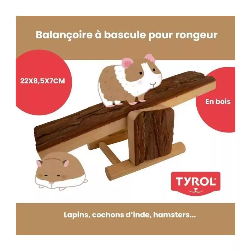 Accessoire rongeur - TYROL - Balançoire a bascule bois - 22 x 8,5 x 7 cm - Bois naturel