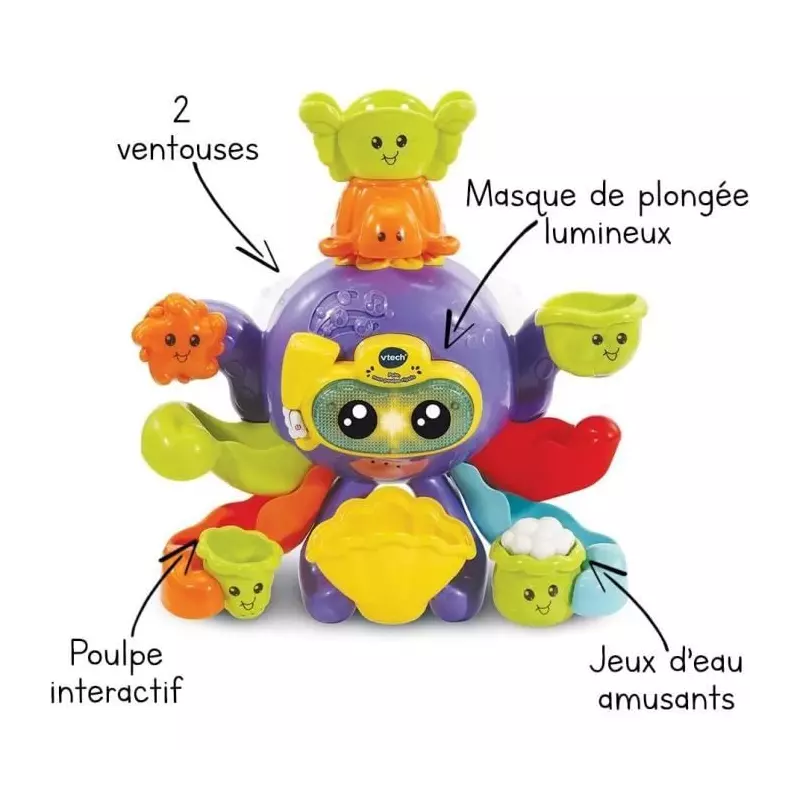 Jouet de Bain interactif VTECH BABY - Polo, Mon Poulpe Rigolo - Multicolore - Pour Bébé de 1 a 5 ans