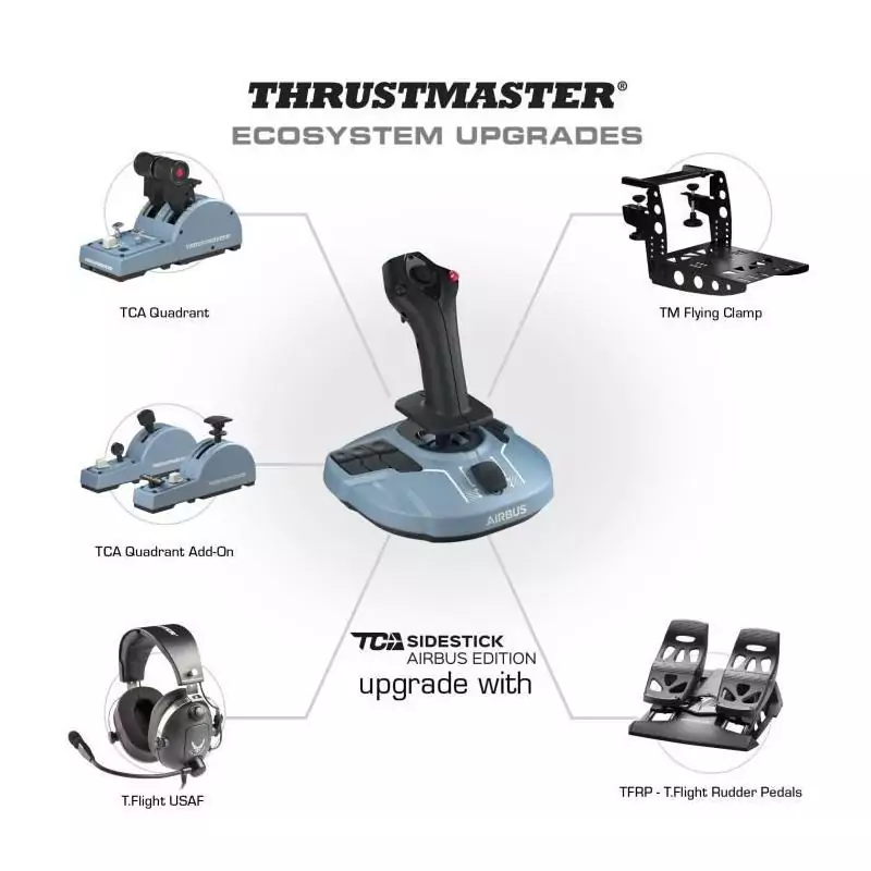 Prenez les commandes et envolez-vous vers de nouvelles aventures avec le THRUSTMASTER Joystick TCA Officer Pack Airbus Edition : la référence ultime en matière de contrôle aérien virtuel.