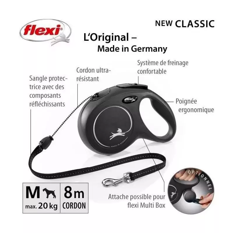 Laisse New Classic M Cord 8 m black Flexi CL20C8-251-S-20