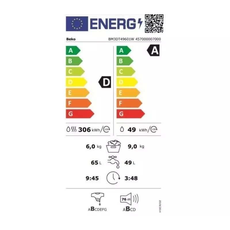 Le lave-linge séchant BEKO BM3DT49601W est un appareil pratique et efficace qui allie performance et polyvalence. Avec sa capacité de 9 kg en lavage et 6 kg en séchage, il offre une solution complète pour laver et sécher le linge en toute simplicité.