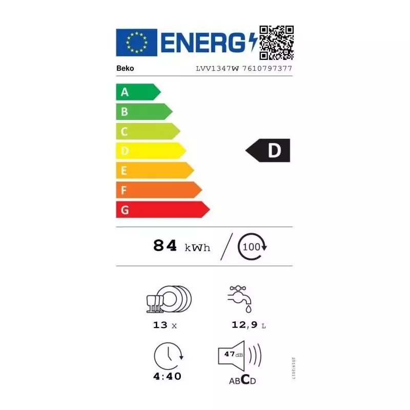 Lave-vaisselle pose libre BEKO LVV1347W bPRO 500 - 13 couverts - L60 cm - 47 dB(A) - Classe D - Blanc