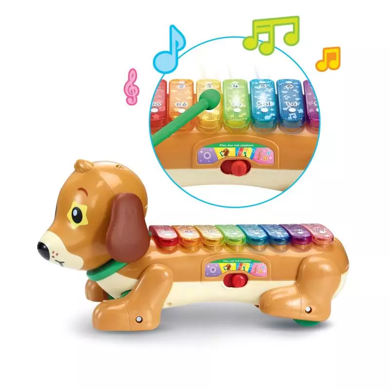 Elton, le chien xylophone initie l’enfant à la musique de façon ludique et lui apprend à jouer de la musique sur des rythmes entraînants !