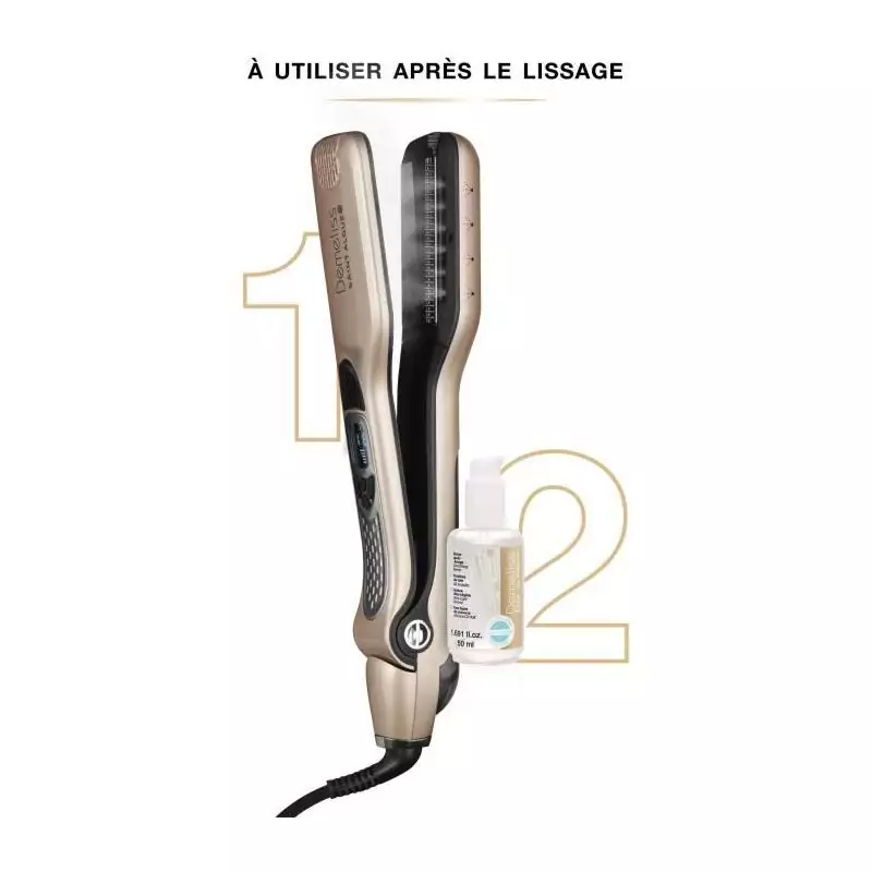 Quant au soin sublimateur inclus dans le coffret, il nourrit en profondeur et apporte brillance et douceur à vos cheveux après chaque utilisation du lisseur. Sa formule enrichie en ingrédients naturels laisse les cheveux soyeux et pleins de vitalité.