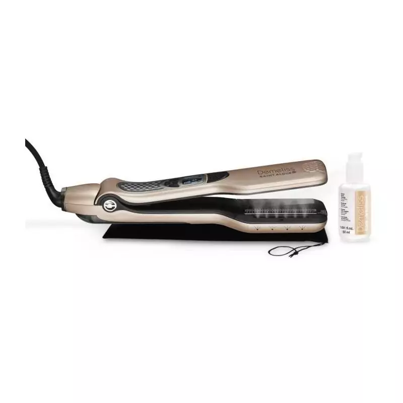 Le Coffret Premium - SAINT ALGUE Demeliss TITANIUM Elixir Ritual est un ensemble de lisseur à vapeur ultra puissant accompagné d'un soin sublimateur pour des cheveux magnifiquement lissés et soignés.