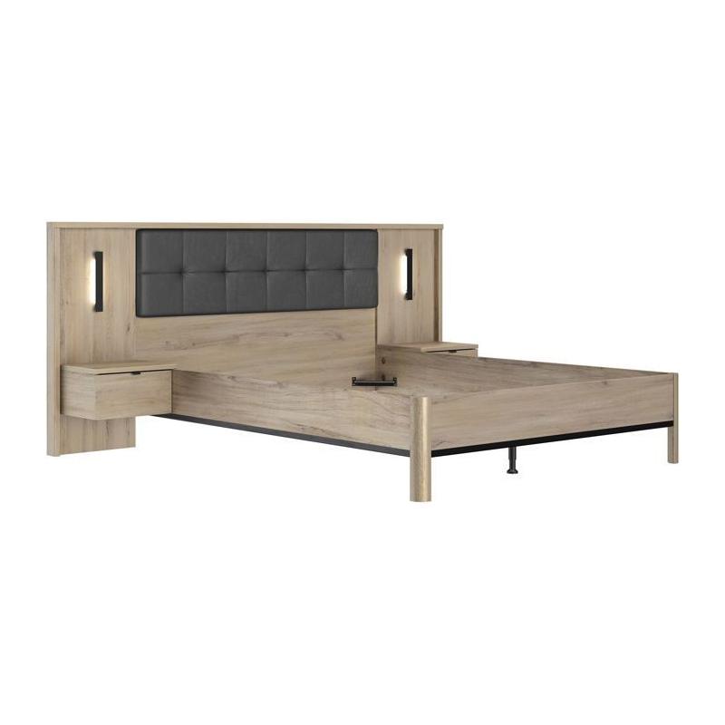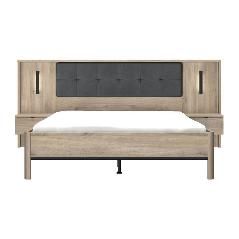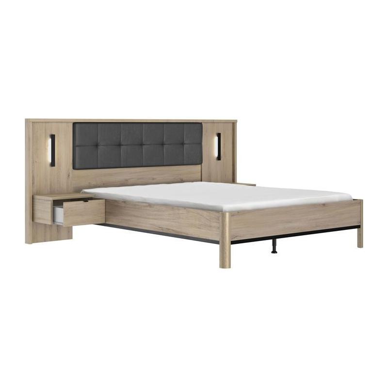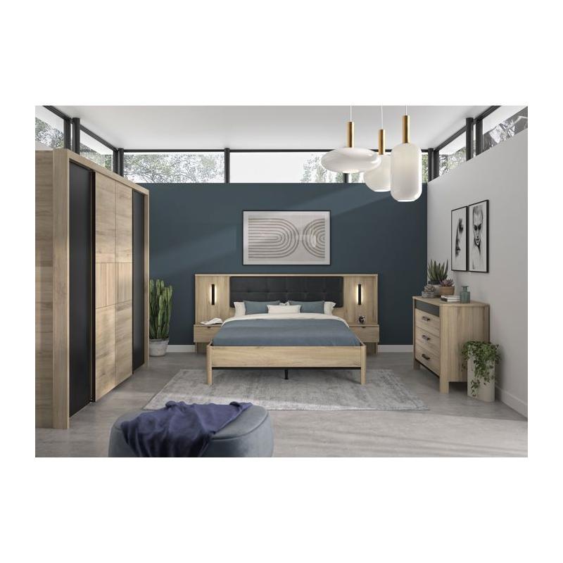 Lit adulte avec chevets lambris - MAXIMIN - 160 x 200 cm - Chene Krönberg clair - GAMI