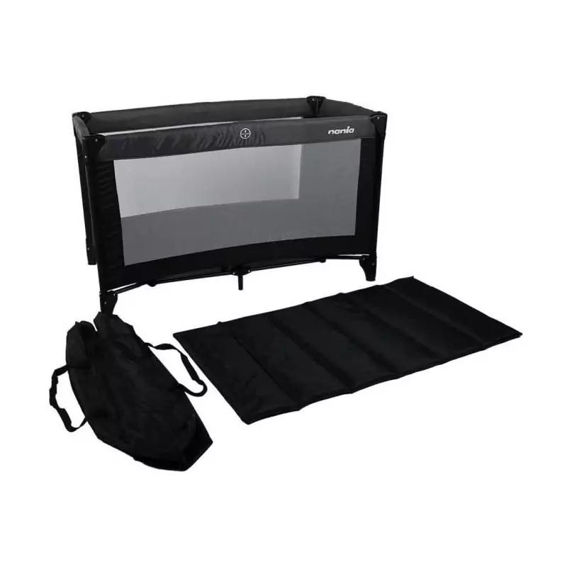La couleur noire/grise du lit parapluie s'intègre facilement dans n'importe quel décor de chambre d'enfant.