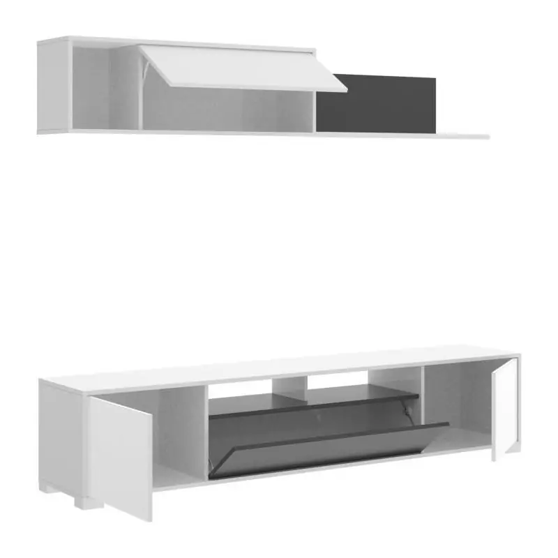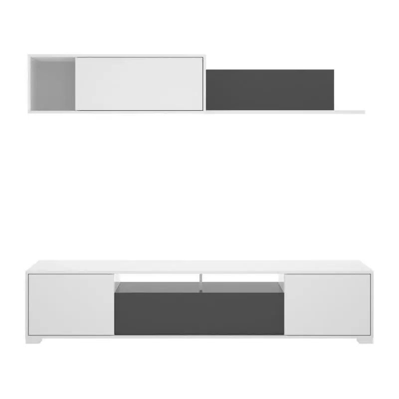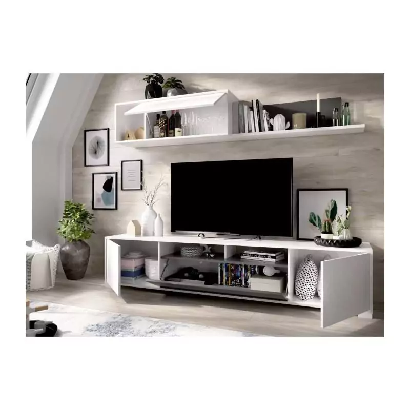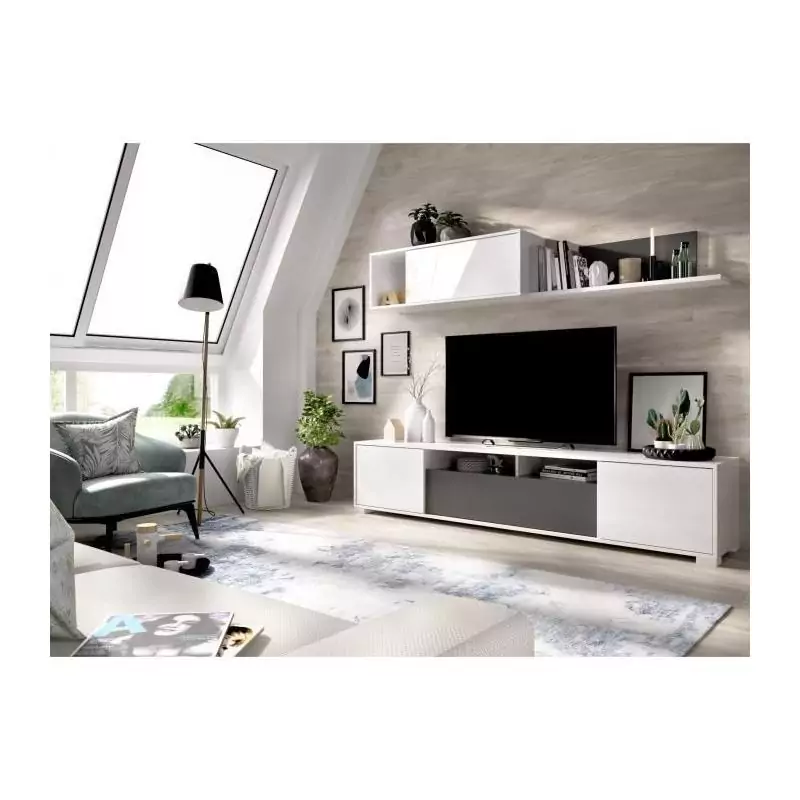Offrez à votre salon une touche d'élégance et de modernité avec la composition de salon TV KEN. Ce meuble TV mural complet saura sublimer votre espace de vie tout en offrant fonctionnalité et style.