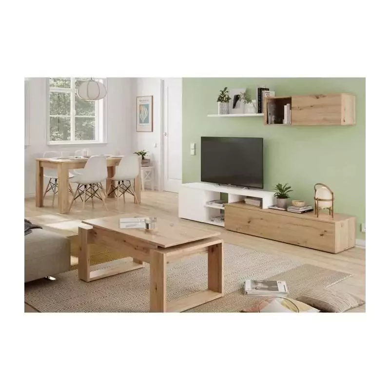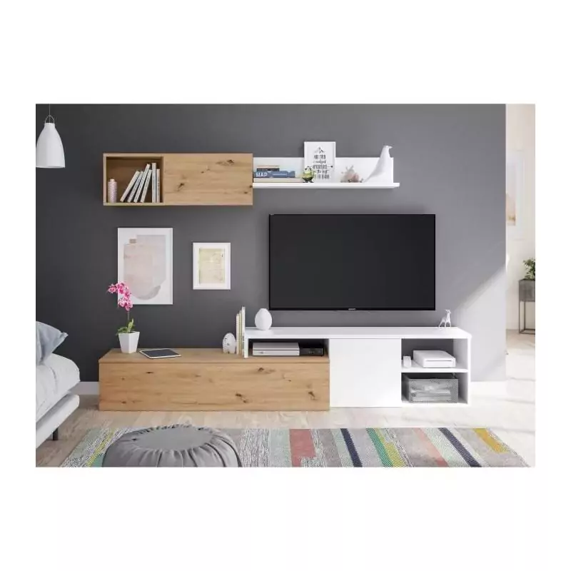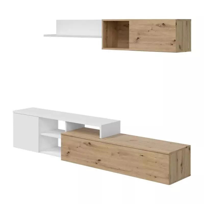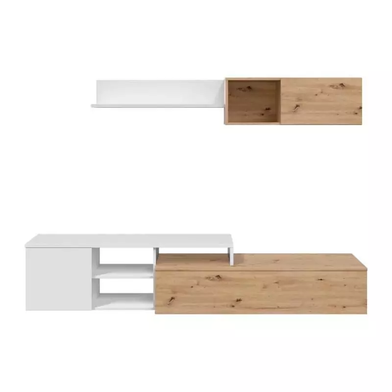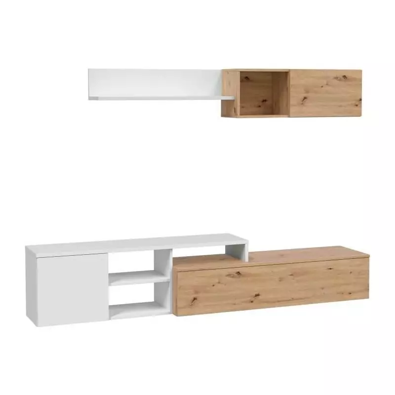 Ensemble meuble TV réversible JULIA - Mélaminé blanc et chene - 2 Portes battantes - L220 x P40 x H 44 cm