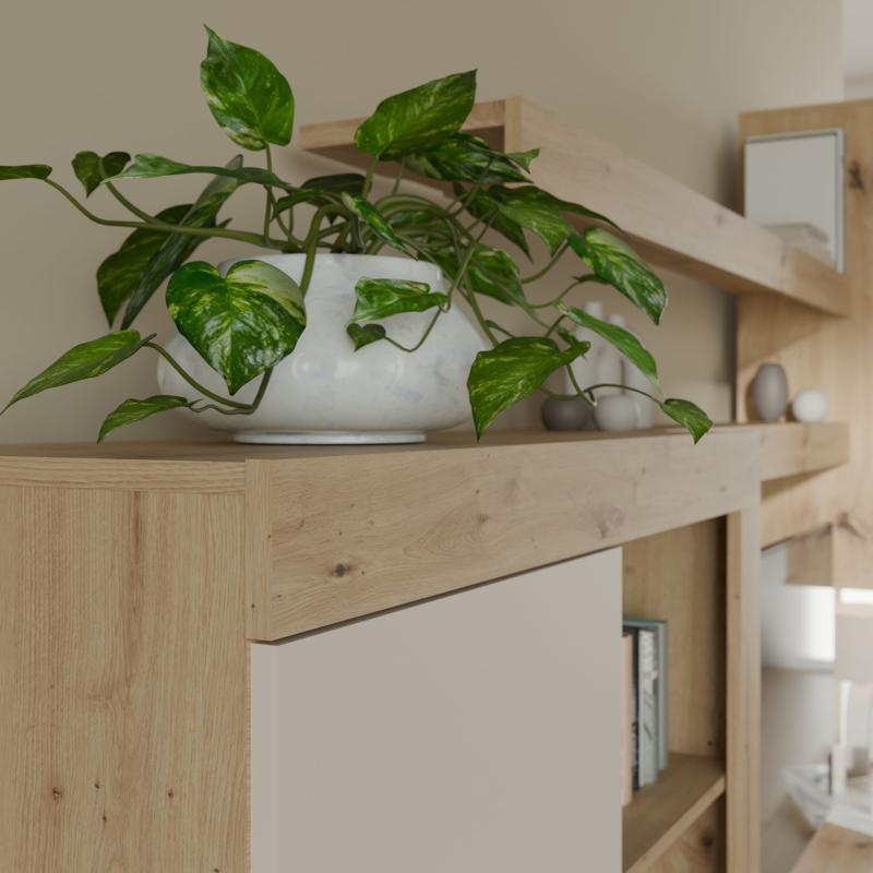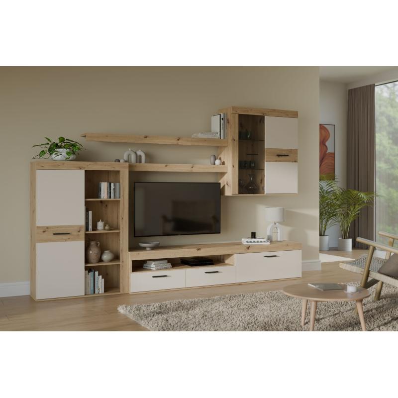 Ensemble meuble TV paroi - ZUMBA - Sable / Chene - 300 x 41 x 200,9 cm - Eclairage LED inclus