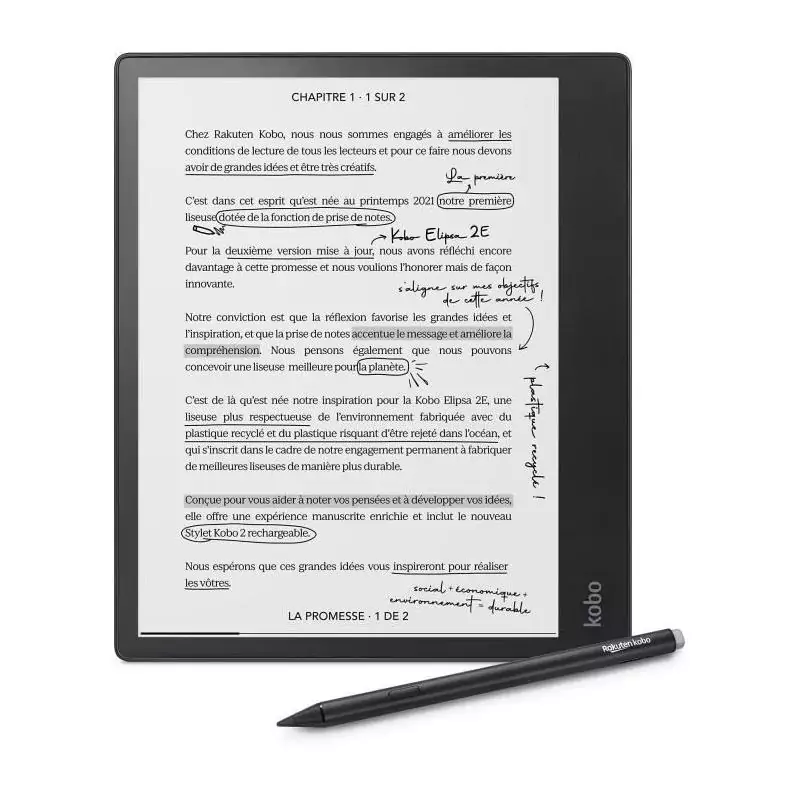 Liseuse Kobo Elipsa 2E – Écran tactile 10,3 – Stylet inclus – WiFi – eBook Reader