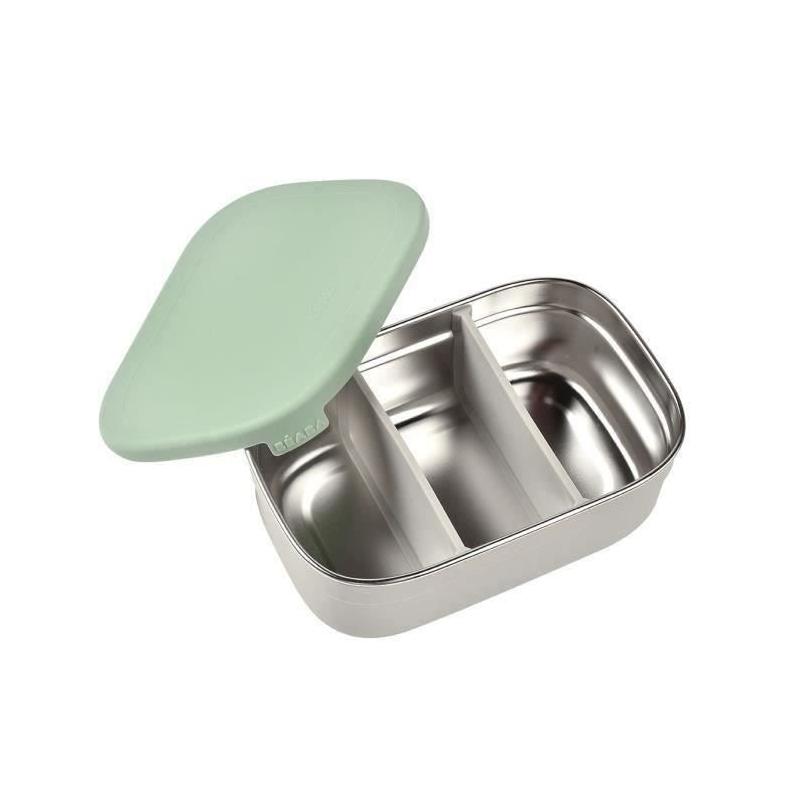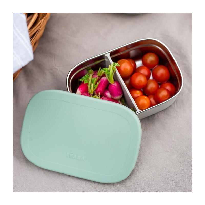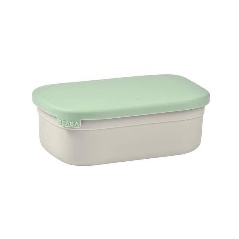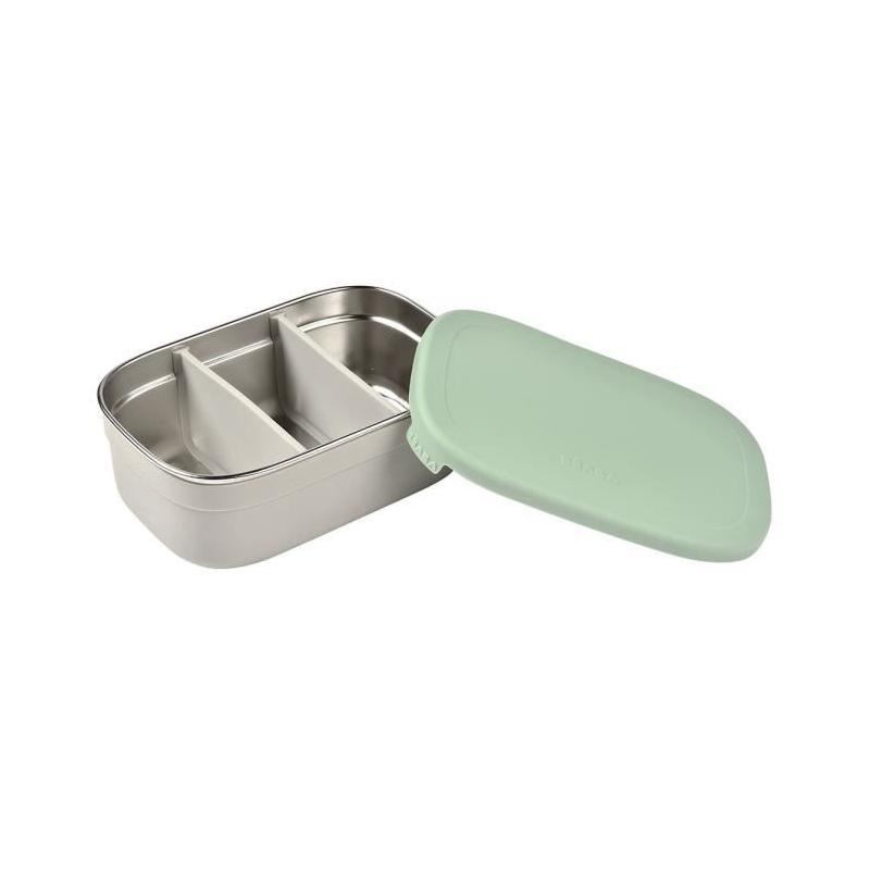 BEABA, Boîte repas enfant en inox, couvercle en silicone et housse de protection, Gris velours et vert sauge