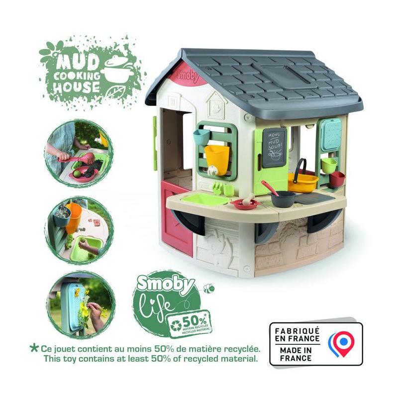 Smoby Life - Mud Cooking House - Fabriquée en France - Matiere Recyclée - 16 accessoires - Des 2 ans
