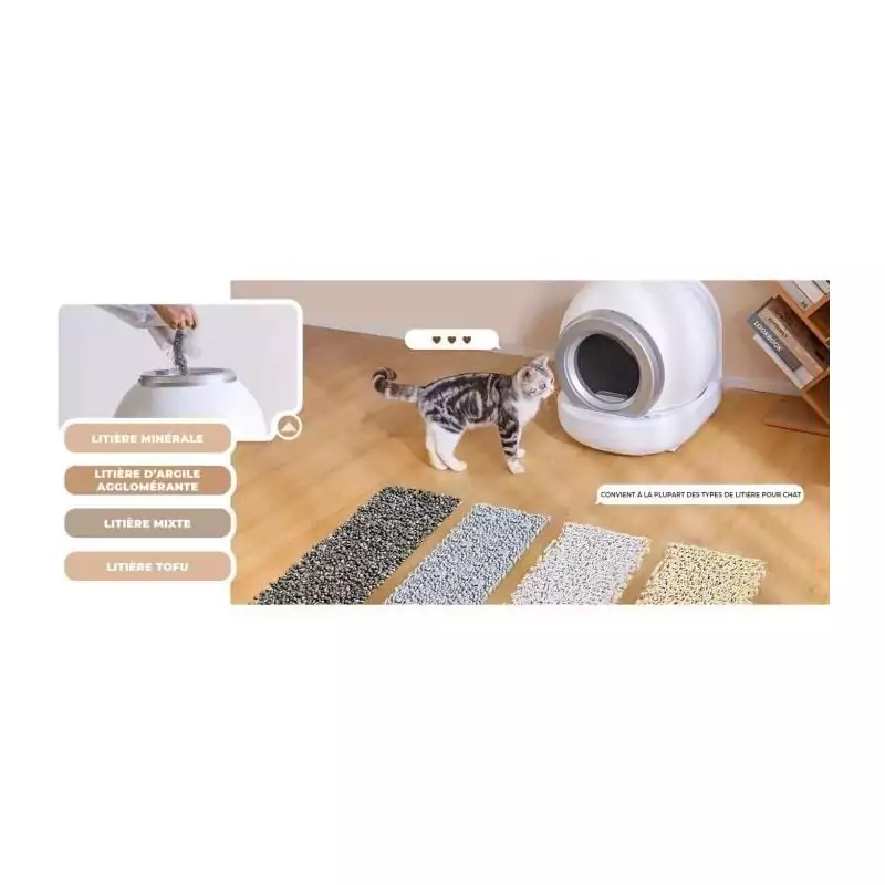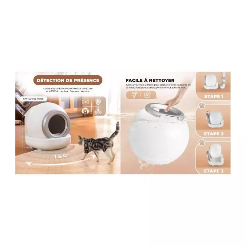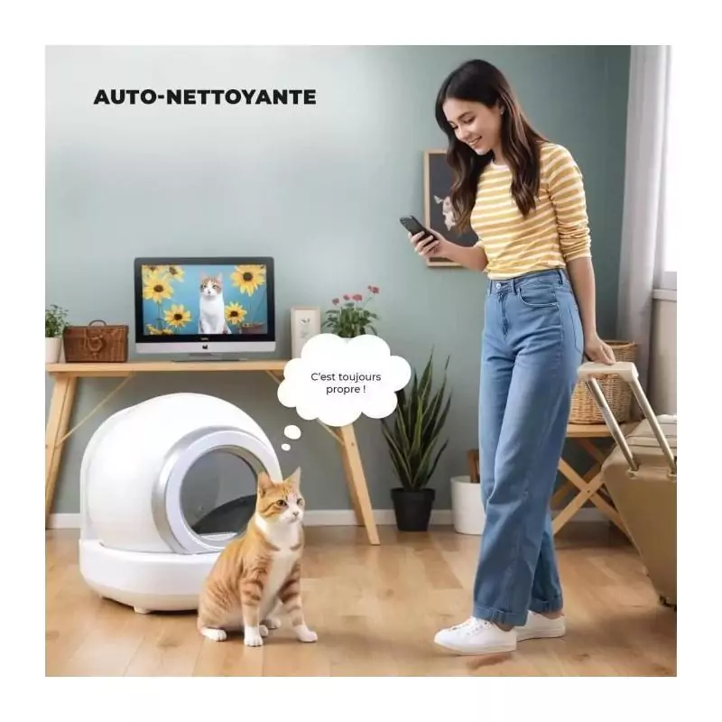 NICE KITTY - Litière auto nettoyante pour chats 65 L démontable et lavable - Connectivité Bluetooth - 575053 cm