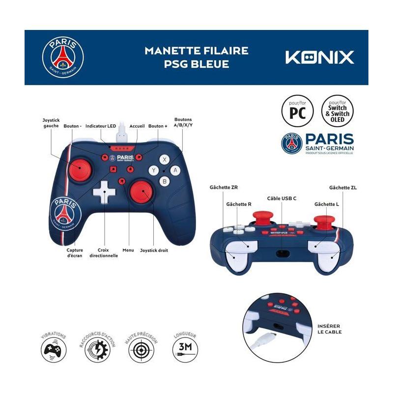 Manette de jeu - Nintendo Switch, Switch 2 et PC - PSG - Filaire - Bleu, blanc et rouge - Fonction vibration - Câble 3 m - Koni