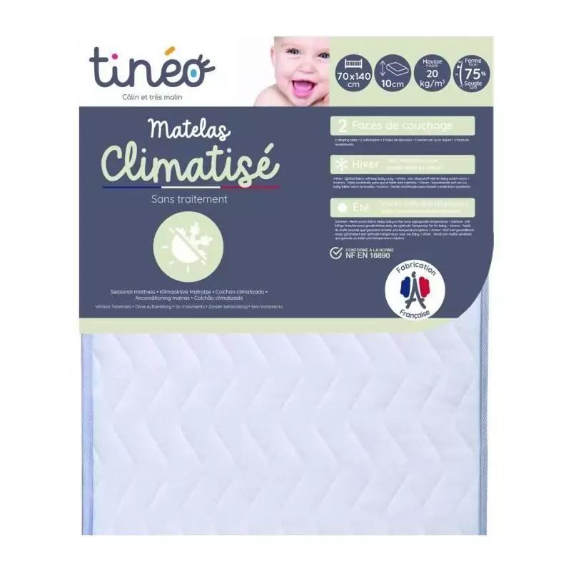 Offrez à votre bébé le confort et le soutien dont il a besoin pour des nuits paisibles et des réveils en pleine forme avec le matelas bébé climatisé - 70 x 140 cm - Epaisseur 10 cm - TINEO.