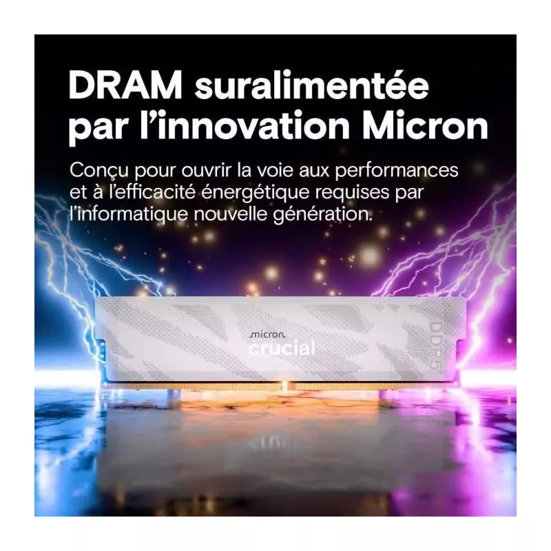 Mémoire gamer - CRUCIAL Pro OC - CP16G64C32U5W - 16 Go DDR5-6400 UDIMM - CL32 avec dissipateur thermique - Blanc