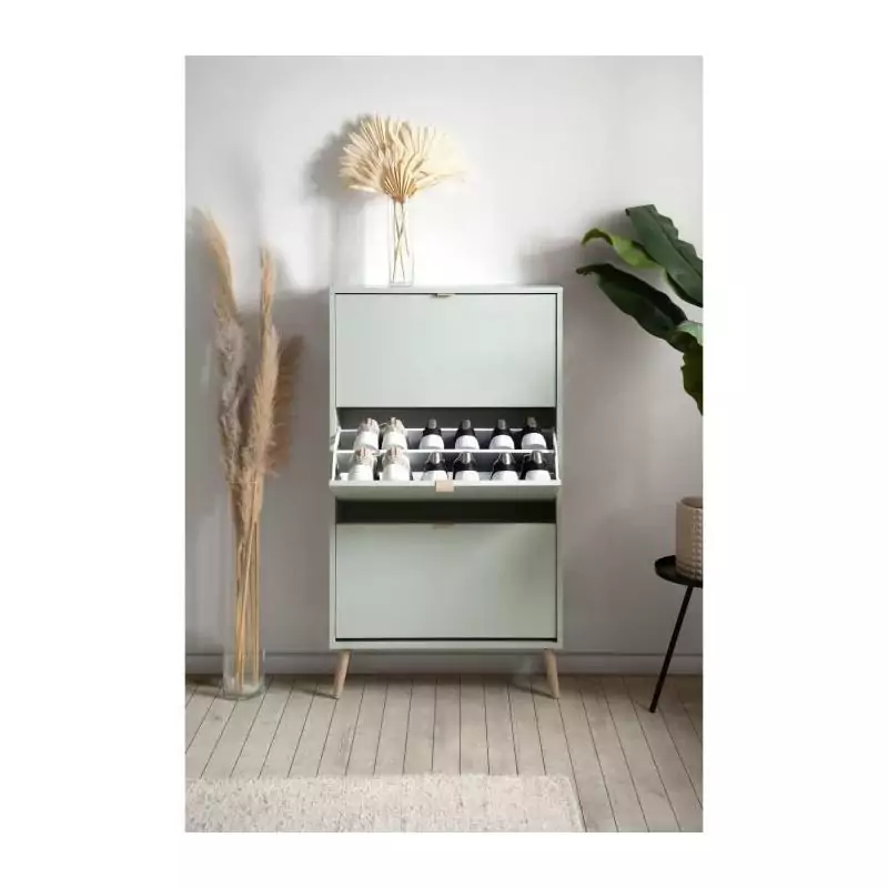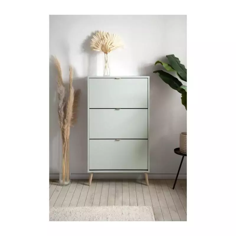 Le Meuble à chaussures VIGO 49A est l'alliance parfaite entre design moderne et fonctionnalité. Avec sa couleur vert pastel rafraîchissante, il apportera une touche de fraîcheur à votre entrée tout en vous permettant de ranger vos chaussures de manière organisée.