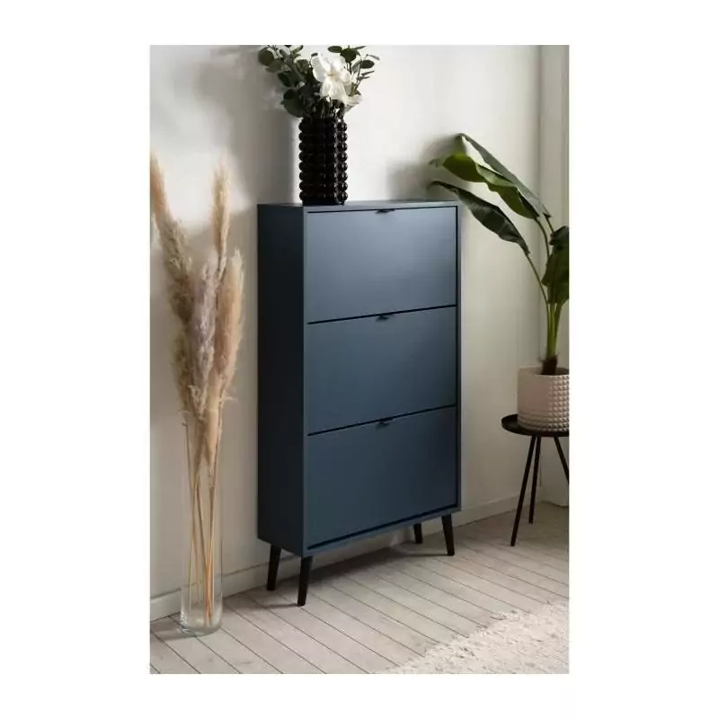 Le Meuble à Chaussures VIGO 49A est l'élément parfait pour ranger vos chaussures tout en apportant une touche d'élégance à votre intérieur. Avec sa couleur Bleu nuit et ses pieds en bois massif, ce meuble allie style et fonctionnalité.
