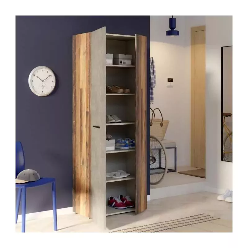Mesurant 68,7 x 36,5 x 181,1 cm, cette armoire est compacte tout en offrant une grande capacité de stockage. Elle trouvera facilement sa place dans une entrée, un dressing ou même une chambre. Les portes battantes permettent un accès facile à vos chaussures tout en les protégeant de la poussière.