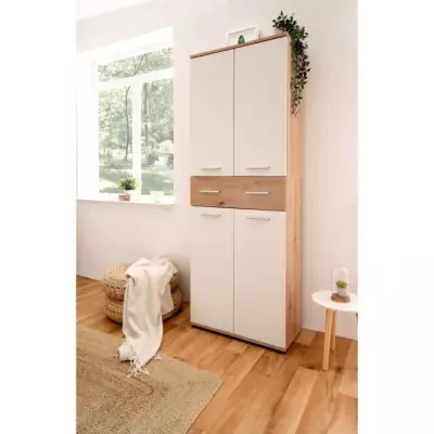 Meuble à chaussures Jacky 42 - Chêne Artisan / Blanc - 70 x 185 x 35 cm - 6 Étagères - 1 Tiroir - Capacité 24 Paires