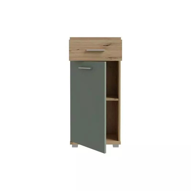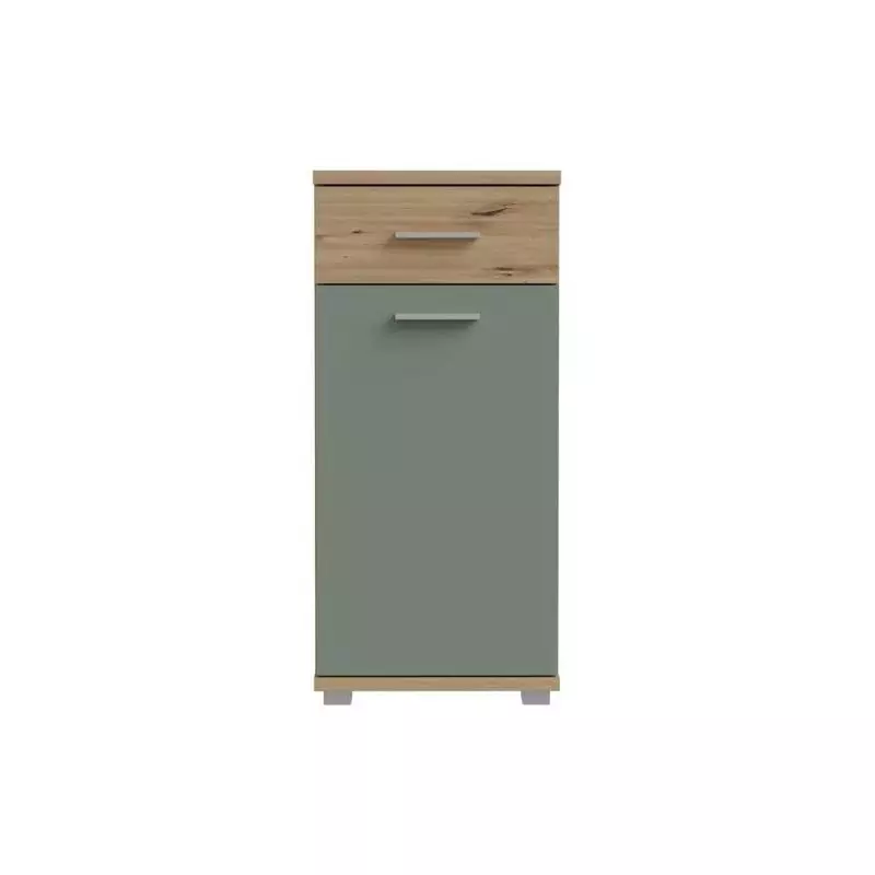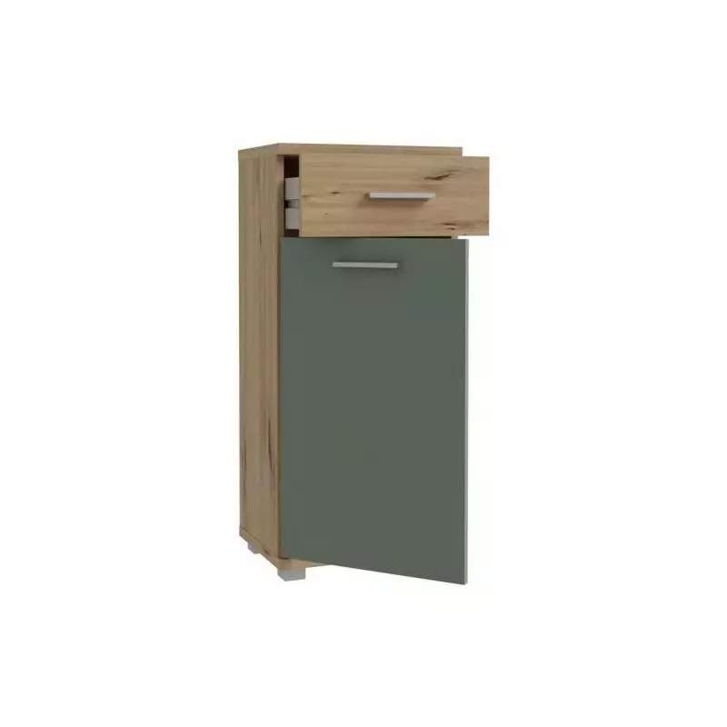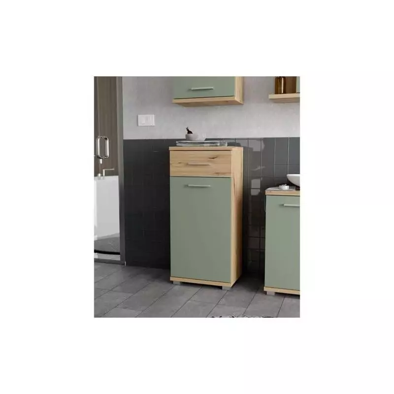 Ce meuble est conçu en chêne artisan de haute qualité, offrant à la fois solidité et élégance à votre pièce. La couleur vert sauge apporte une touche naturelle et apaisante, parfaite pour créer une atmosphère relaxante dans votre salle de bain.