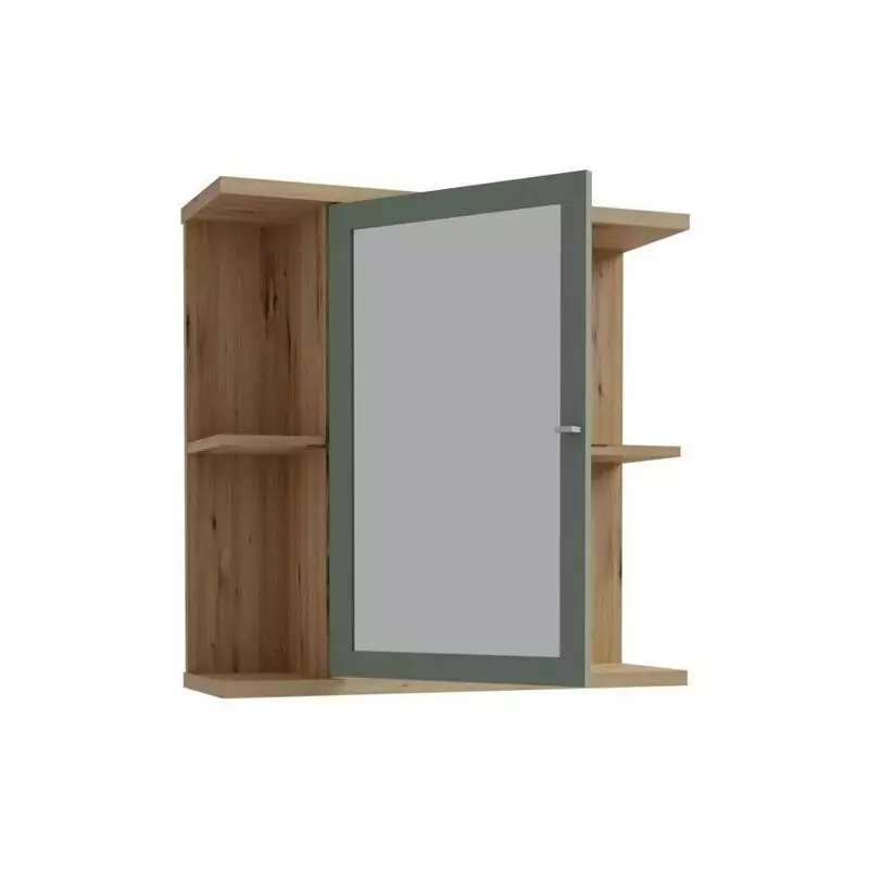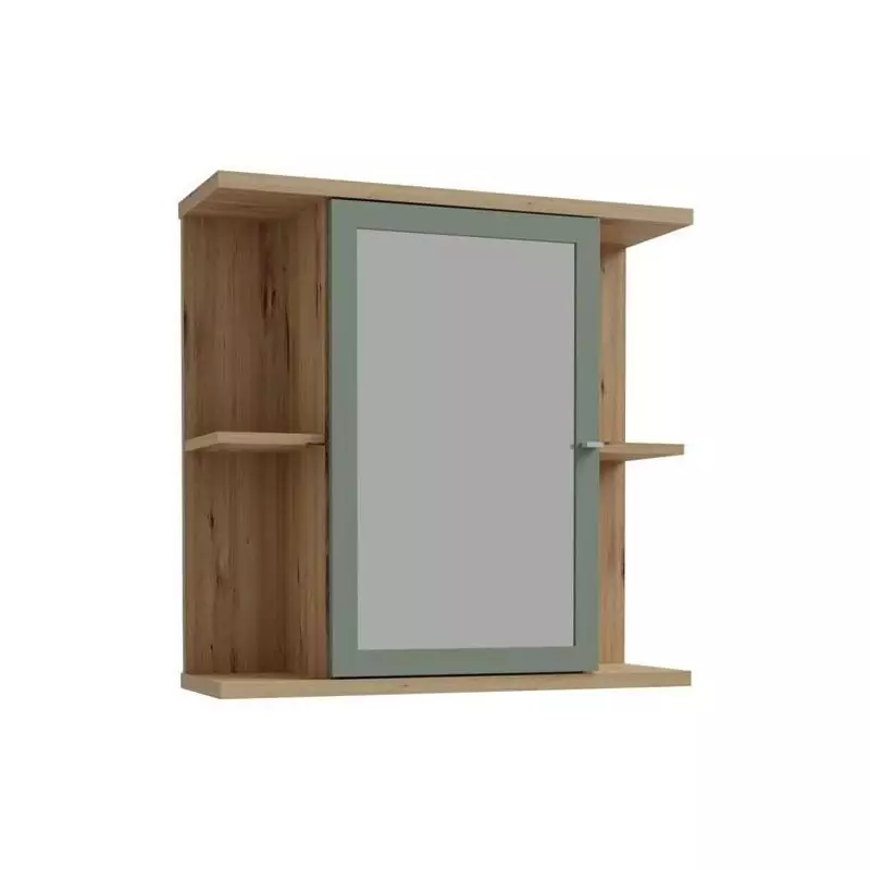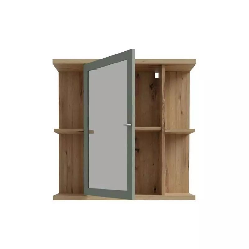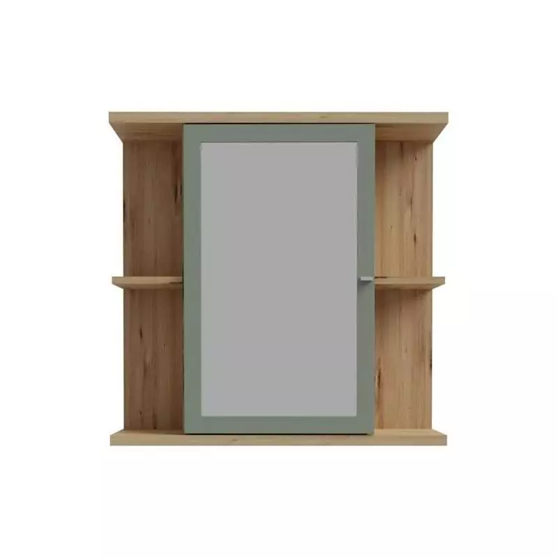 Armoire à suspendre - Chêne artisan / Vert sauge - 1 porte avec miroir - Meuble de salle de bain - 69,9 x 23,2 x 68,8 cm